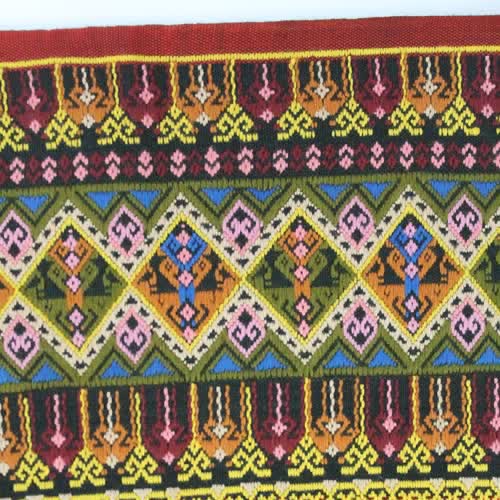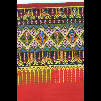 | คำอธิบาย : ผ้าทอจากการประกวดของวิทยาลัยชุมชน 2559ประเภท ตีนฝ้าย ดั้งเดิม เคมี หน้าแคบ ภาคเหนือได้รางวัลที่ 3ขนาดของผ้า : 1.75 x 0.30 เมตรสีของผ้า : แดงชื่อลายผ้าพร้อมประวัติ : ลายนกกินน้ำร่วมต้น |