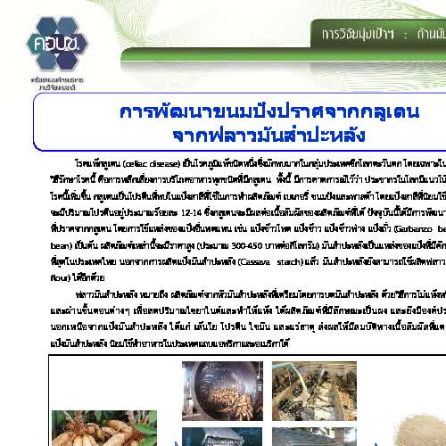 "การพัฒนาขนมปังปราศจากกลูเตนจากฟลาวมันสำปะหลัง".