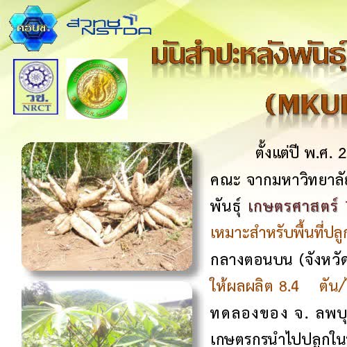 (2559). "มันสำปะหลังพันธุ์ เกษตรศาสตร์ 72 (MKULB 08 - 2 - 32)".
