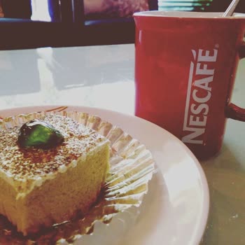 | คำอธิบาย : อาหารเช้ารูปแบบหนึ่งที่ประกอบด้วยกาแฟ ขนมเค้ก |