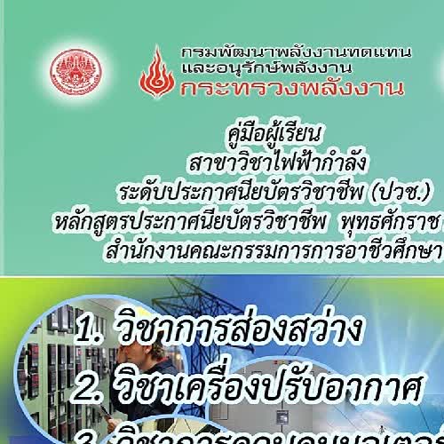 | คำสำคัญ : พพ./สอศ./ไฟฟ้ากำลัง/การส่องสว่าง/เครื่องปรับอากาศ/การควบคุมมอเตอร์ไฟฟ้า/หม้อแปลงไฟฟ้า |
