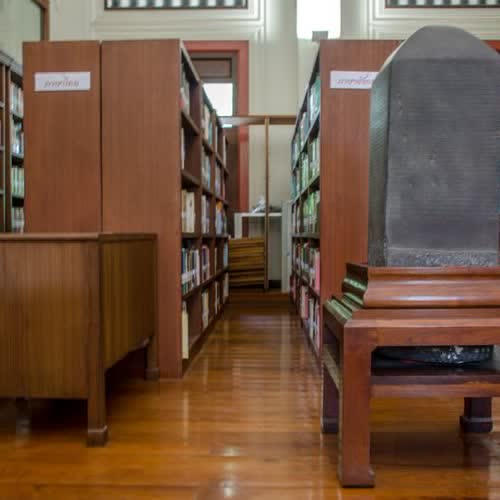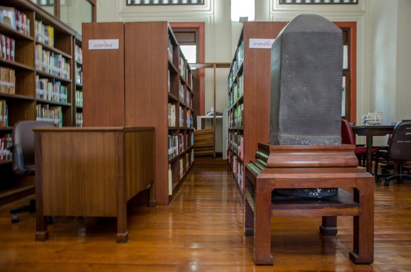 ห้องหนังสือเกี่ยวกับประเทศในอาเซียน เห็นศิลาจารึกจำลอง ได้รับใบอนุญาตภายใต้ ให้เผยแพร่-ดัดแปลง-โดยต้องระบุที่มาแต่ห้ามใช้เพื่อการค้า 3.0 Thailand.