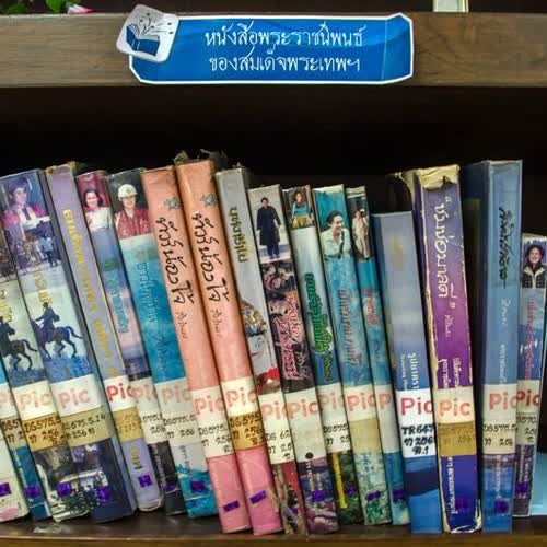 ชั้นหนังสือพระราชนิพนธ์ในสมเด็จพระเทพรัตนราชสุดา ฯ สยามบรมราชกุมารี ได้รับใบอนุญาตภายใต้ ให้เผยแพร่-ดัดแปลง-โดยต้องระบุที่มาแต่ห้ามใช้เพื่อการค้า 3.0 Thailand.