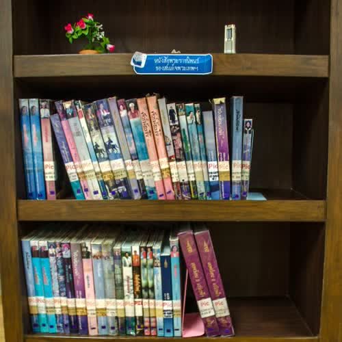 ชั้นหนังสือพระราชนิพนธ์ในสมเด็จพระเทพรัตนราชสุดา ฯ สยามบรมราชกุมารี ได้รับใบอนุญาตภายใต้ ให้เผยแพร่-ดัดแปลง-โดยต้องระบุที่มาแต่ห้ามใช้เพื่อการค้า 3.0 Thailand.