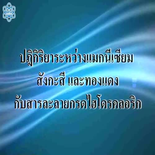 | คำอธิบาย : ปฏิกิริยาระหว่างแมกนีเซียม สังกะสี และทองแดงกับสารละลายกรดไฮโดรคลอริก |