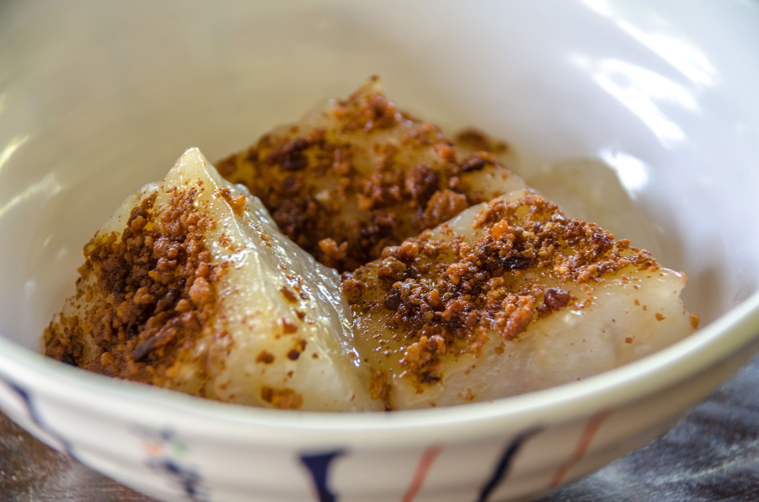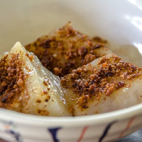 | คำอธิบาย : ขนมขี้มัน หรือ ขนมกวนหน้ากะทิขี้โล้ ทำจาก การกวนแป้งข้าวเจ้า แป้งมัน น้ำกะทิ น้ำตาล รวมกัน กวนจนแป้งใส ส่วนที่โรยหน้าทำจากการนำหัวกะทิตั้งไฟปานกลางจนกะทิเป็นสีน้ำตาล แล้วน้ำมาโรยหน้าบนแป้งที่กวนไว้แล้ว |