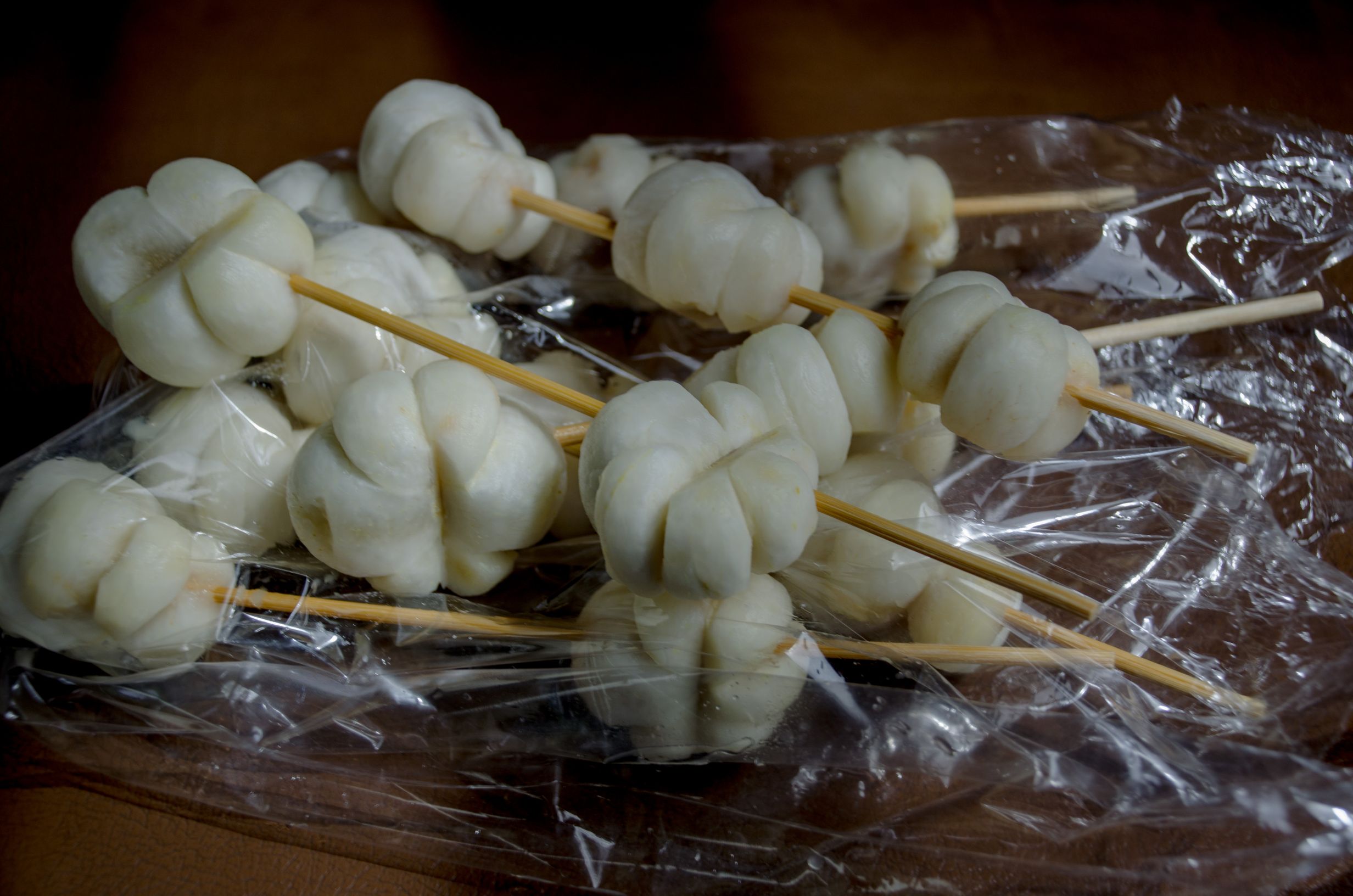 | คำอธิบาย : มังคุดคัด ของอร่อยเมืองนครศรีธรรมราช คือการนำเอาผลมังคุดห่ามๆ หรือมังคุดที่ยังไม่สุกดี เปลือกยังแข็งเป็นสีเขียว นำมาปอกเปลือกออกด้วยมีด ซึ่งภาษาท้องถิ่นเรียกว่า “คัด” กรรมวิธีนี้ต้องใช้ความชำนาญไม่น้อย เพราะนอกจากจะต้องใช้แรงปอกเปลือกแข็งๆ ออกแล้ว ยังต้องระวังไม่ให้ยางมังคุดซึ่งมีมากเลอะเนื้อมังคุดอีกด้วย มิฉะนั้นจะทำให้มังคุดมีสีคล้ำและเสียรสชาติเมื่อคัดมังคุดจนเหลือแต่เนื้อขาวๆ แล้วจึงนำไปแช่ในน้ำปูนใสหรือน้ำสารส้ม ล้างเพื่อให้หมดยางและเพื่อให้มังคุดมีเนื้อสีขาวหวานน่ากินมากขึ้น ก่อนจะนำไปผึ่งให้แห้ง แล้วนำมาเสียบไม้ |