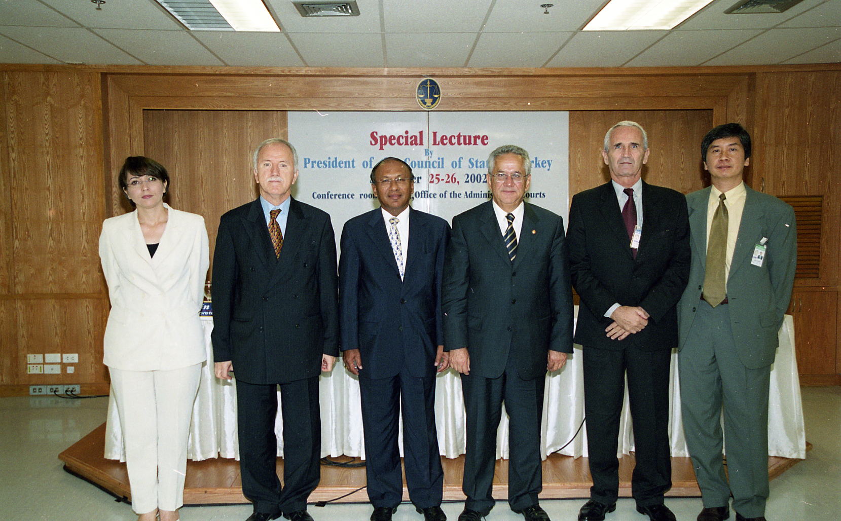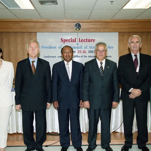| คำอธิบาย : ประธานสภาแห่งรัฐตุรกี เดินทางเยือนศาลปกครองไทยอย่างเป็นทางการ เพื่อบรรยายพิเศษ เรื่อง โครงสร้างและอำนาจหน้าที่ของสภาแห่งรัฐตุรกี และเยี่ยมชมการดำเนินงานของศาลปกครอง วันที่ 23 – 29 กันยายน 2545 |