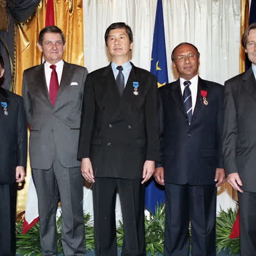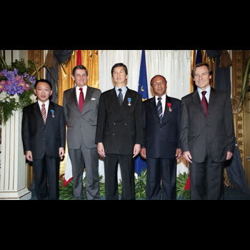 | คำอธิบาย : รองประธานสภาแห่งรัฐฝรั่งเศสมอบเครื่องราชอิสริยาภรณ์ของรัฐบาลฝรั่งเศสแก่นายอักขราทร จุฬารัตน ประธานศาลปกครองสูงสุด นายวิษณุ วรัญญู รองอธิบดีศาลปกครองกลาง และนายชาญชัย แสวงศักดิ์ เลขาธิการสำนักงานศาลปกครอง วันที่ 12 พฤศจิกายน 2546 |