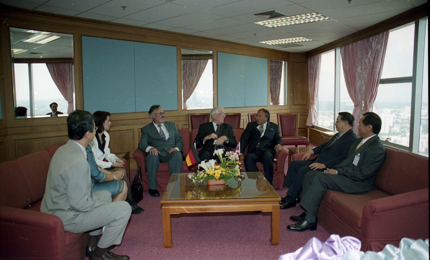 | คำอธิบาย : ผู้แทนจากเยอรมนี (Prof.Dr.Ernst Benda) และผู้แทนมูลนิธิคอนราดอาเดนาวร์ ประจำประเทศไทย เยี่ยมชมศาลปกครอง วันที่ 8 พฤษภาคม 2545 |