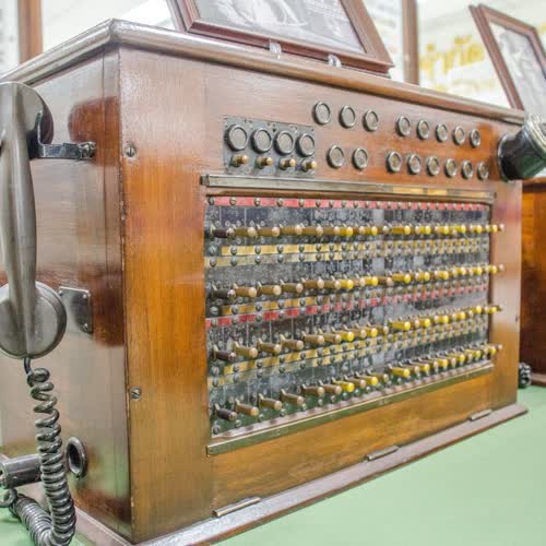 | คำอธิบาย : ตู้สาขาหรือตู้สลับสาย อุปกรณ์นี้ใช้เฉพาะในอาคารเป็นส่วนใหญ่ เช่น ในบริษัท โรงแรม เป็นต้น เพื่อต่อโทรศัพท์ให้แต่ละเครื่องที่อยู่ภายในอาคารนั้นๆ โดยการใช้สายเสียบ ซึ่งมีตู้สาขาในระบบต่างๆ ที่ได้พัฒนาขึ้นตามลำดับ เริ่มใช้ประมาณปี พ.ศ. 2429 |