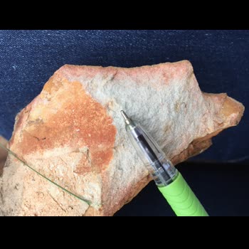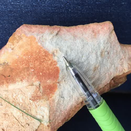 | คำอธิบาย : หินทราย (Sandstone) ดังกล่าวพบบริเวณใกล้โครงการอ่างเก็บน้ำแม่พริก (ผาวิ่งชู้) อำเภอแม่พริก จังหวัดลำปาง จัดเป็นหินตะกอนชนิดหนึ่ง สีสดเป็นสีเทาถึงเทาอ่อน สีผุเป็นสีเหลืองส้ม เนื้อแน่น เม็ดตะกอนมีขนาดละเอียดถึงปานกลาง มีความกลมมนของเม็ดตะกอนอยู่ในเกณฑ์ที่ดี การคัดขนาดของเม็ดตะกอนอยู่ในเกณฑ์ที่ดี |
