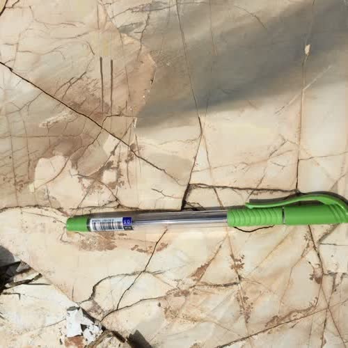 | คำอธิบาย : หินดินดาน (Shale) ดังกล่าวพบบริเวณอำเภอแม่พริก จังหวัดลำปาง จัดเป็นหินตะกอนประเภทหนึ่ง สีสดเป็นสีเทา และสีน้ำตาลอ่อน มีขนาดของเม็ดตะกอนละเอียดมากจนไม่สามารถมองเห็นได้ด้วยตาเปล่า ประกอบด้วยแร่ดินเป็นส่วนใหญ่ แสดงลักษณะการแตกเป็นชั้นๆ แผ่นๆ |