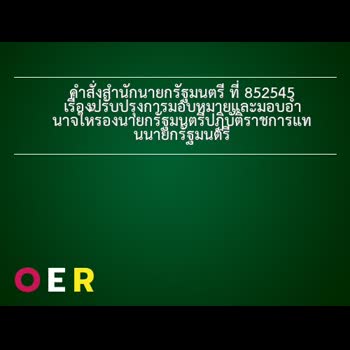 คำสั่งสำนักนายกรัฐมนตรี ที่ 85/2545 เรื่องปรับปรุงการมอบหมายและมอบอำนาจให้รองนายกรัฐมนตรีปฏิบัติราชการแทนนายกรัฐมนตรี ได้รับใบอนุญาตภายใต้ ให้เผยแพร่-โดยต้องระบุที่มาแต่ห้ามดัดแปลงและห้ามใช้เพื่อการค้า 3.0 Thailand.