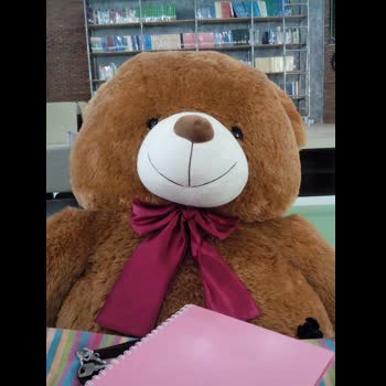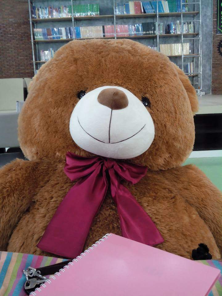 | คำอธิบาย : น้องหมีชื่อบุญล้ำ อยู่ทึ่ห้องสมุดคณะเกษตรศาสตร์คอยนั่งเป็นเพื่อนพี่พี่เวลาอ่านหนังสือ |