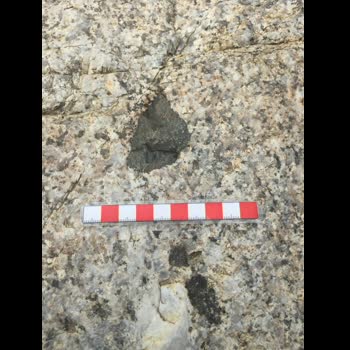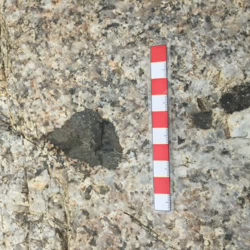 หินแปลกปลอมที่พบอยู่ในหินแกรนิต อำเภอศรีสวัสดิ์ จังหวัดกาญจนบุรี ได้รับใบอนุญาตภายใต้ ให้เผยแพร่-โดยต้องระบุที่มาแต่ห้ามดัดแปลงและห้ามใช้เพื่อการค้า 3.0 Thailand.
