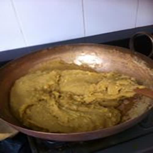 รีวิว : การกวนถั่วทำไส้ขนมในกะทะทองเหลือง