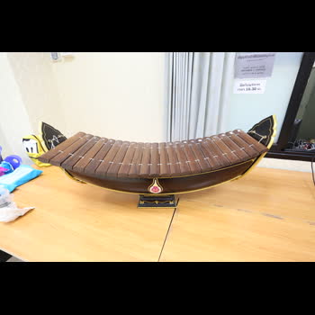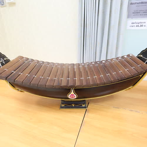 | คำอธิบาย : ระนาด, ระนาดเอก เครื่องดนตรีประเภทเครื่องตี สันนิษฐานว่าแต่เดิมคงนำไม้ทำอย่างกรับหลายๆอันวางเรียงตีให้เกิดเสียงอย่างหยาบๆขึ้นก่อน แล้วคิดทำไม้รองเป็นรางวางเรียงไป ต่อมาจึงประดิษฐ์ดัดแปลงให้มีขนาดลดหลั่นกันวางบนรางเพื่อให้อุ้มเสียงได้ จากนั้นจึงใช้เชือกร้อยไม้กรับขนาดต่างๆนั้นให้ติดกันขึงแขวนไว้บนราง ใช้ไม้ตีเกิดเสียงกังวานไพเราะลดหลั่นกันตามต้องการ และใช้ขี้ผึ้งกับตะกั่วผสมกันติดหัวท้ายลูก ระนาดเพื่อถ่วงเสียงให้ไพเราะยิ่งขึ้น ให้ชื่อว่า "ระนาด" |