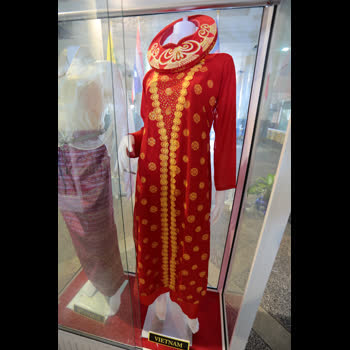| คำอธิบาย : อ่าวหญ่าย (Ao dai) เป็น ชุดประจำชาติของประเทศเวียดนามที่ประกอบไปด้วยชุดผ้าไหมที่พอดีตัวสวมทับ กางเกงขายาวซึ่งเป็นชุดที่มักสวมใส่ในงานแต่งงานและพิธีการสำคัญของประเทศ มีลักษณะคล้ายชุดกี่เพ้าของจีน ในปัจจุบันเป็นชุดที่ได้รับความนิยมจากผู้หญิงเวียดนาม ส่วนผู้ชายเวียดนามจะสวมใส่ชุดอ่าวหญ่ายในพิธีแต่งงาน หรือพิธีศพ |