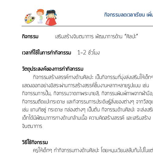| คำสำคัญ : เสริมสร้างจินตนาการ, ศิลปะ, พัฒนาการด้าน |