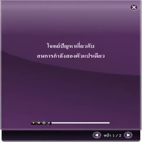 | ชื่อเรื่อง : โจทย์ปัญหาเกี่ยวกับสมการกำลังสองตัวแปรเดียว |