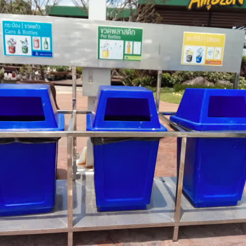 | คำอธิบาย : ถังรองรับขยะที่ปั๊มปตท. อ.ประทาย จ.นครราชสีมามีการแยกขยะอย่างชัดเจน |