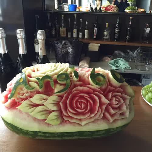 | คำสำคัญ : แตงโม, ผลไม้, vegetable & fruit carving, การแกะสลักผักและผลไม้, fruit carving, การแกะสลัก |