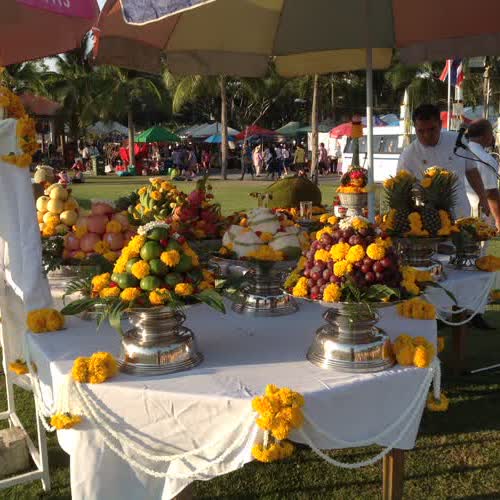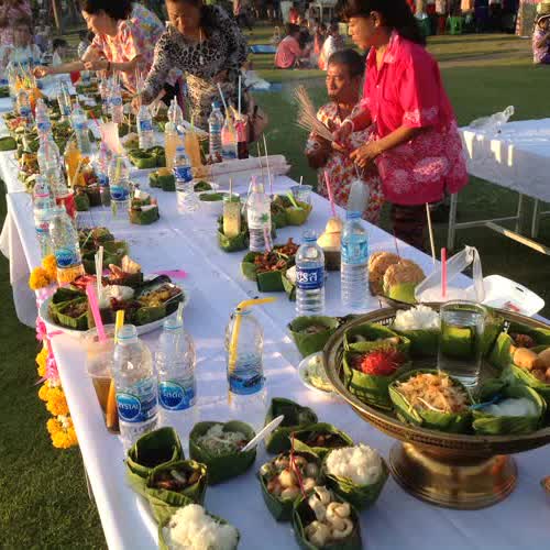 | คำอธิบาย : เป็นประเพณีท้องถิ่นของจังหวัดชลบุรี มีจัดในหลายอำเภอ อาทิเช่น อำเภอเมืองชลบุรี อำเภอศรีราชา อำเภอบางละมุง อำเภอพนัสนิคม ฯลฯ ครั้นกาลเวลาล่วงเลยผ่านไปในบางพื้นที่ประเพณีได้เลือนหายไป ที่ศรีราชายังคงอนุรักษ์ไว้อย่างต่อเนื่อง ในอดีตเมื่อถึงช่วงเทศกาลสงกรานต์ศรีมหาราชาของทุกปีชาวบ้านจะนัดหมายกันมา นำสำรับข้าวปลาอาหารทั้งคาวหวานมากองรวมกันและเชิญภูตผีทั้งหลายมากินปีละ 1 ครั้ง โดยเชื่อว่าภูติผีจะไม่มาทำอันตรายชีวิตครอบครัวหรือทรัพย์สินของตนเองหลัง |