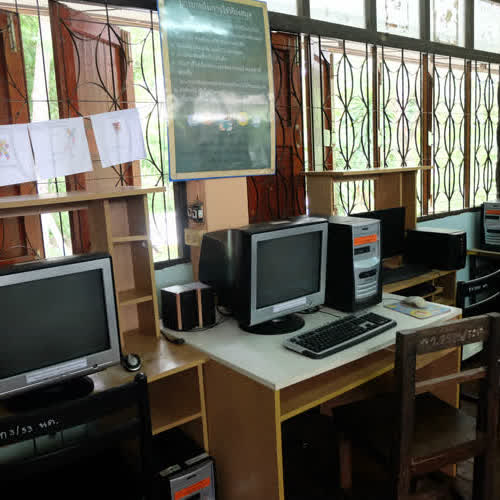 | คำอธิบาย : มุมคอมพิวเตอร์ เพื่อใช้สำหรับสืบค้นข้อมูลสารสนเทศ ภายในห้องสมุดโรงเรียนบ้านโนนแต้ ต.สำราญ อ.เมือง จ.ขอนแก่น |