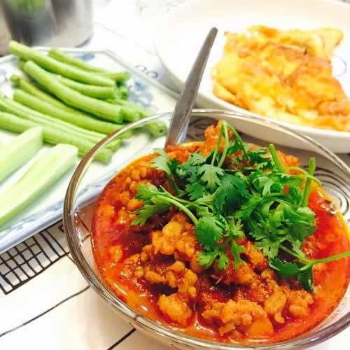 | คำอธิบาย : น้ำพริกอ่อง เป็นอาหารเหนือ ที่นิยมรับประทานร่วมกับผักสด ผักลวก |