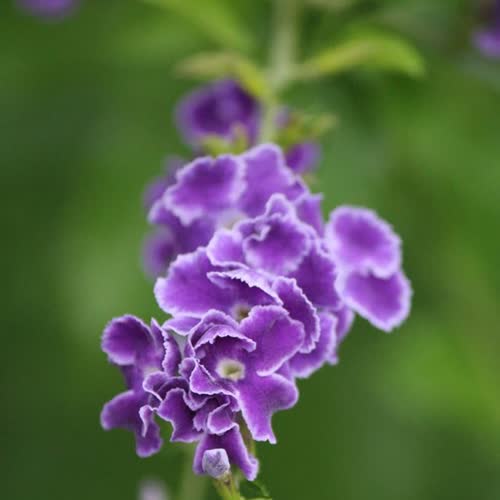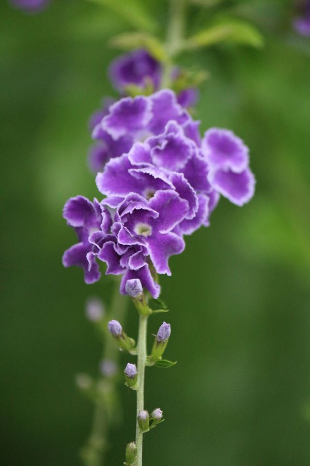 | คำอธิบาย : เทียนหยด มีชื่อพื้นเมืองหลายชื่อ ได้แก่ เครือ ; พวงม่วง; ฟองสมุทร; เทียนไข ; สาวบ่อลด เป็นไม้พุ่มใบเป็นใบเดี่ยวรูปมนรีเรียว สอบไปทางปลาย ขอบใบเป็นหยักห่างๆออกดอกเป็นช่อห้อยตามปลายยอด ดอกมีสีม่วงมีกลีบดอก 5 กลีบ ชื่อวิทยาศาสตร์: Duranta repensชั้น: สปีชีส์ข้อมูลจาก วิกิพีเดีย |