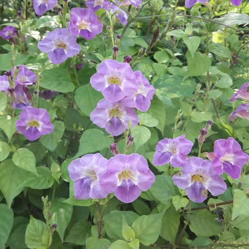 | คำอธิบาย : ดอกย่าหยา หรือยะหยา เป็นดอกไม้ที่มีหลายชื่อมาก เช่น เบญจรงค์ ๕ สี (เพราะมีทั้งสีขาว สีเหลือง สีม่วง สีชมพู ...), อ่อมแซบ, บาหยา, เพ็ญทิวา, ตำลึงหวาน, บุษบาริมทาง เป็นทั้งดอกไม้และผักเพราะนำมาทำอาหารได้หลายอย่างทั้งผัดไฟแดง แกงจืด แกงอ่อม ชุบแป้งทอด ลวกหรือกินสดจิ้มน้ำพริก กินได้ทั้งใบ ดอก ก้าน ยอดอ่อน มีสรรพคุณ บำรุงเลือด บำรุงกำลังและสายตา |