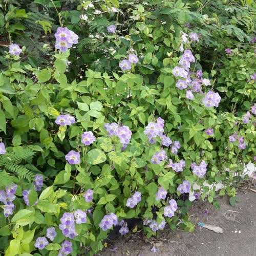| คำอธิบาย : ดอกย่าหยา หรือยะหยา เป็นดอกไม้ที่มีหลายชื่อมาก เช่น เบญจรงค์ ๕ สี (เพราะมีทั้งสีขาว สีเหลือง สีม่วง สีชมพู ...), อ่อมแซบ, บาหยา, เพ็ญทิวา, ตำลึงหวาน, บุษบาริมทาง เป็นทั้งดอกไม้และผักเพราะนำมาทำอาหารได้หลายอย่างทั้งผัดไฟแดง แกงจืด แกงอ่อม ชุบแป้งทอด ลวกหรือกินสดจิ้มน้ำพริก กินได้ทั้งใบ ดอก ก้าน ยอดอ่อน มีสรรพคุณ บำรุงเลือด บำรุงกำลังและสายตา |