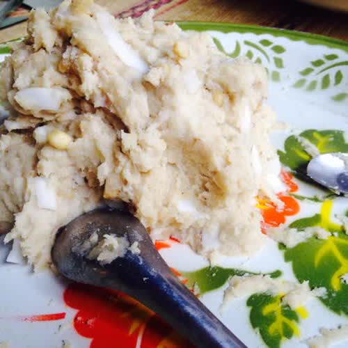 | คำอธิบาย : ข้าวต้มแดก เป็นขนมพื้นบ้านอีสาน มักทำในงานบุญต่างๆ เช่น งานบวช งานกฐิน ส่วนผสมได้แก่ แป้งข้าวเหนียวตำพอละเอียด (หรือแป้งข้าวเหนียวสด) 3 ถ้วย กล้วยน้ำว้างอมขยำให้พอละเอียด มะพร้าวทึนทึกหั่นเป็นชิ้นบางๆ ถั่วลิสงแช่ |