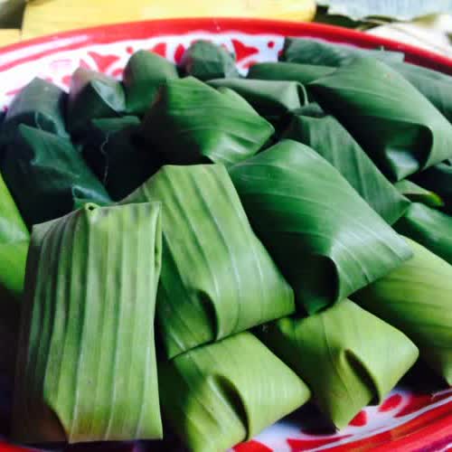 | คำอธิบาย : ข้าวต้มแดก เป็นขนมพื้นบ้านอีสาน มักทำในงานบุญต่างๆ เช่น งานบวช งานกฐิน ผสมแป้ง กล้วย น้ำตาล มะพร้าวทึนทึก ถั่วลิสงแล้ว ตักใส่ใบตองห่อหักมุมหัวท้าย |