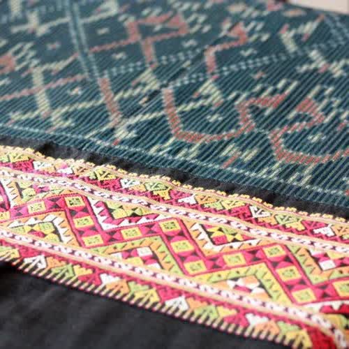 | คำอธิบาย : ผ้าฝ้าย ลายพญานาค ต่อหัวด้วยลายขิด จากประเทศสาธารณรัฐประชาธิปไตยประชาชนลาว |