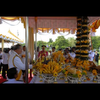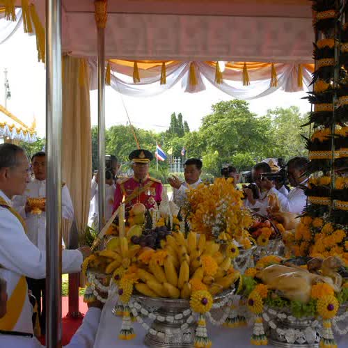 | คำอธิบาย : พระราชพิธีบวงสรวง สมเด็จพระบูรพมหากษัตริยาธิราช ณ พลับพลาพิธี พระที่นั่งอนันตสมาคม วันที่ 9 มิถุนายน 2549 |