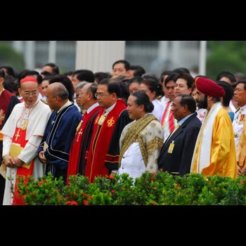 | คำอธิบาย : พระราชพิธีบวงสรวง สมเด็จพระบูรพมหากษัตริยาธิราช ณ พลับพลาพิธี พระที่นั่งอนันตสมาคม วันที่ 9 มิถุนายน 2549 |