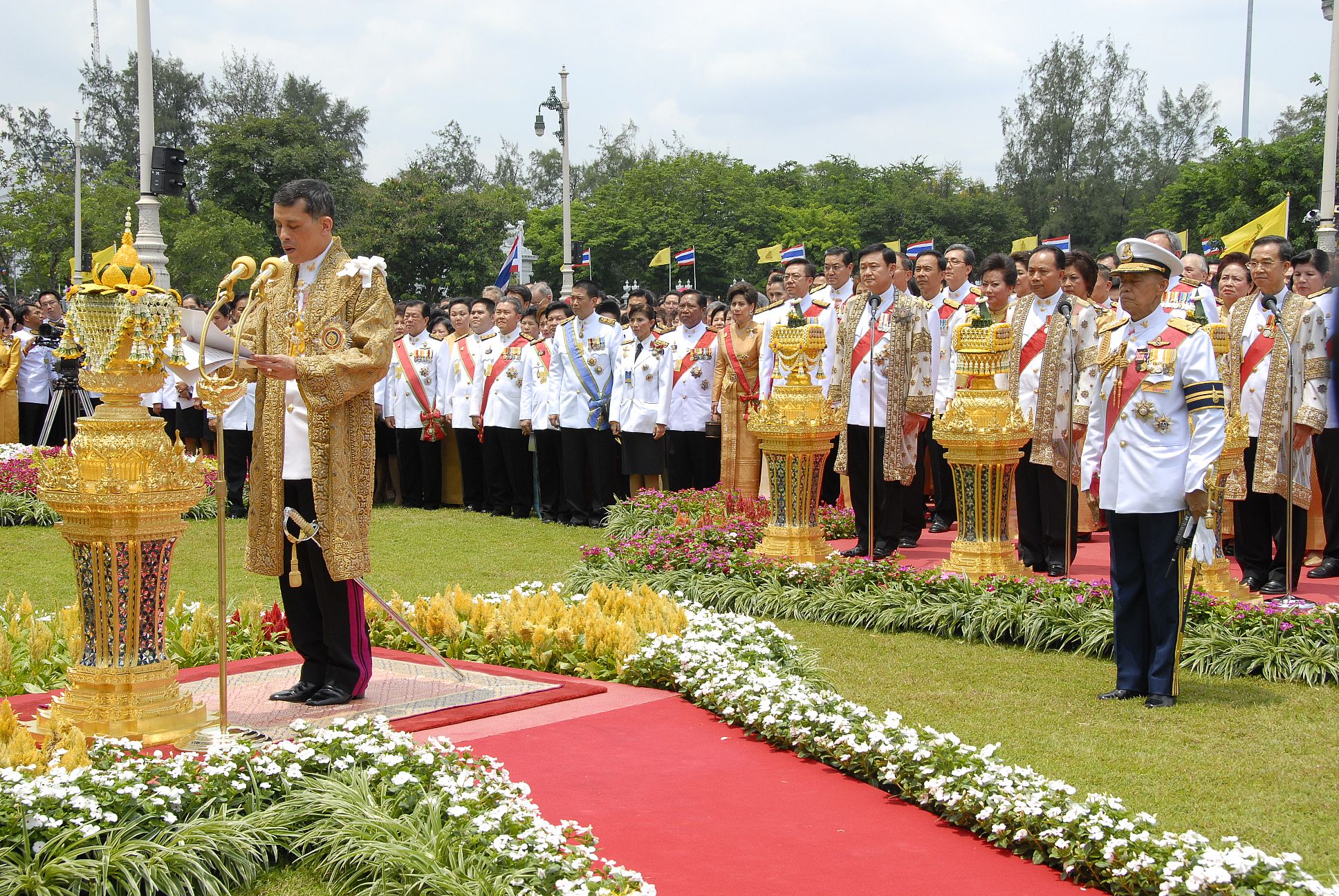 คำอธิบาย : พระราชพิธีบวงสรวง สมเด็จพระบูรพมหากษัตริยาธิราช ณ พลับพลาพิธี พระที่นั่งอนันตสมาคม วันที่ 9 มิถุนายน 2549 |
