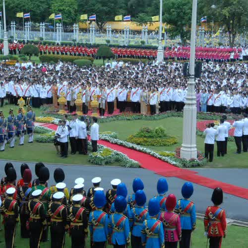 | คำอธิบาย : พระราชพิธีบวงสรวง สมเด็จพระบูรพมหากษัตริยาธิราช ณ พลับพลาพิธี พระที่นั่งอนันตสมาคม วันที่ 9 มิถุนายน 2549 |
