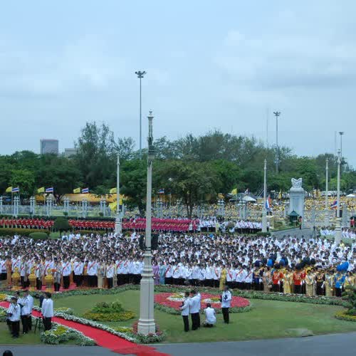 | คำอธิบาย : พระราชพิธีบวงสรวง สมเด็จพระบูรพมหากษัตริยาธิราช ณ พลับพลาพิธี พระที่นั่งอนันตสมาคม วันที่ 9 มิถุนายน 2549 |