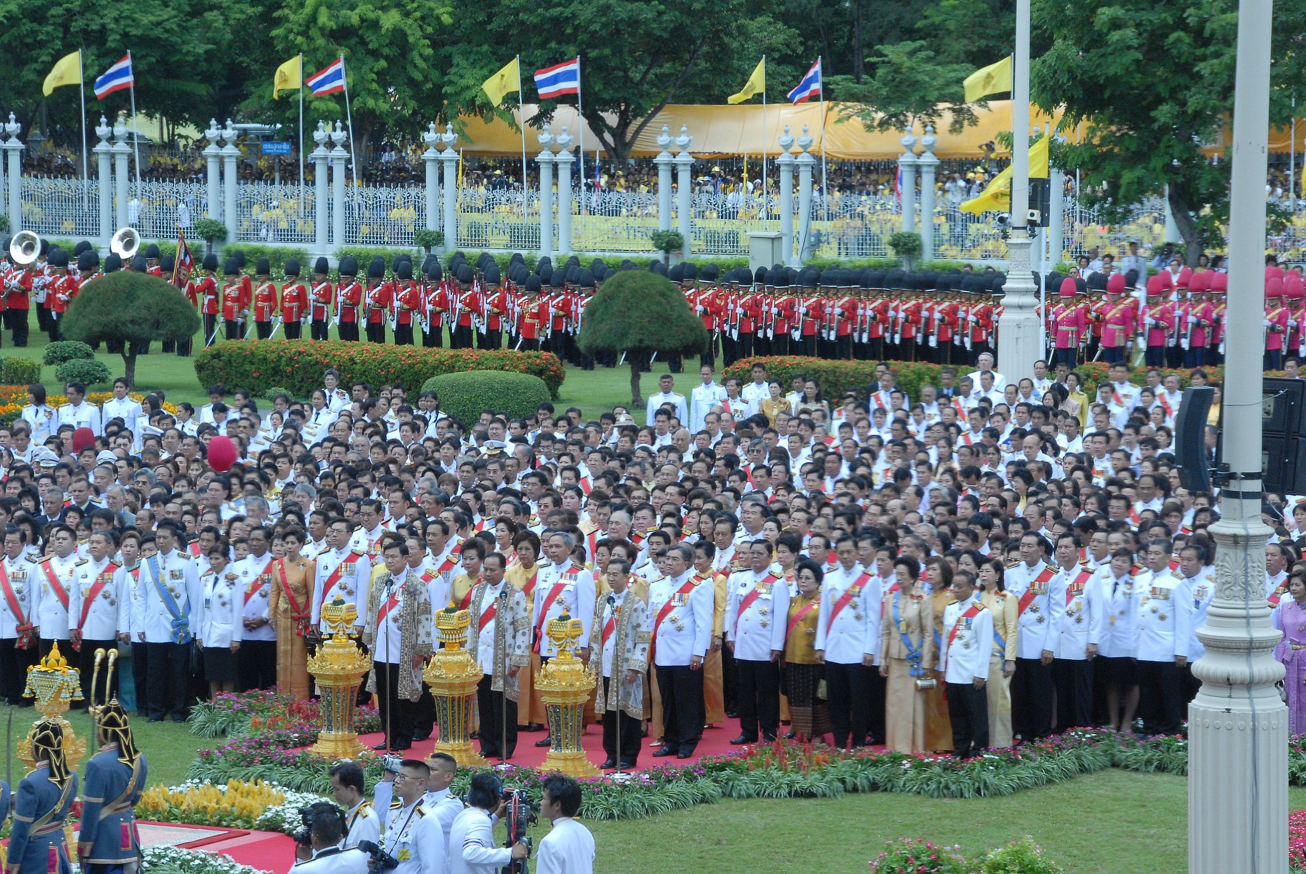 | คำอธิบาย : พระราชพิธีบวงสรวง สมเด็จพระบูรพมหากษัตริยาธิราช ณ พลับพลาพิธี พระที่นั่งอนันตสมาคม วันที่ 9 มิถุนายน 2549 |