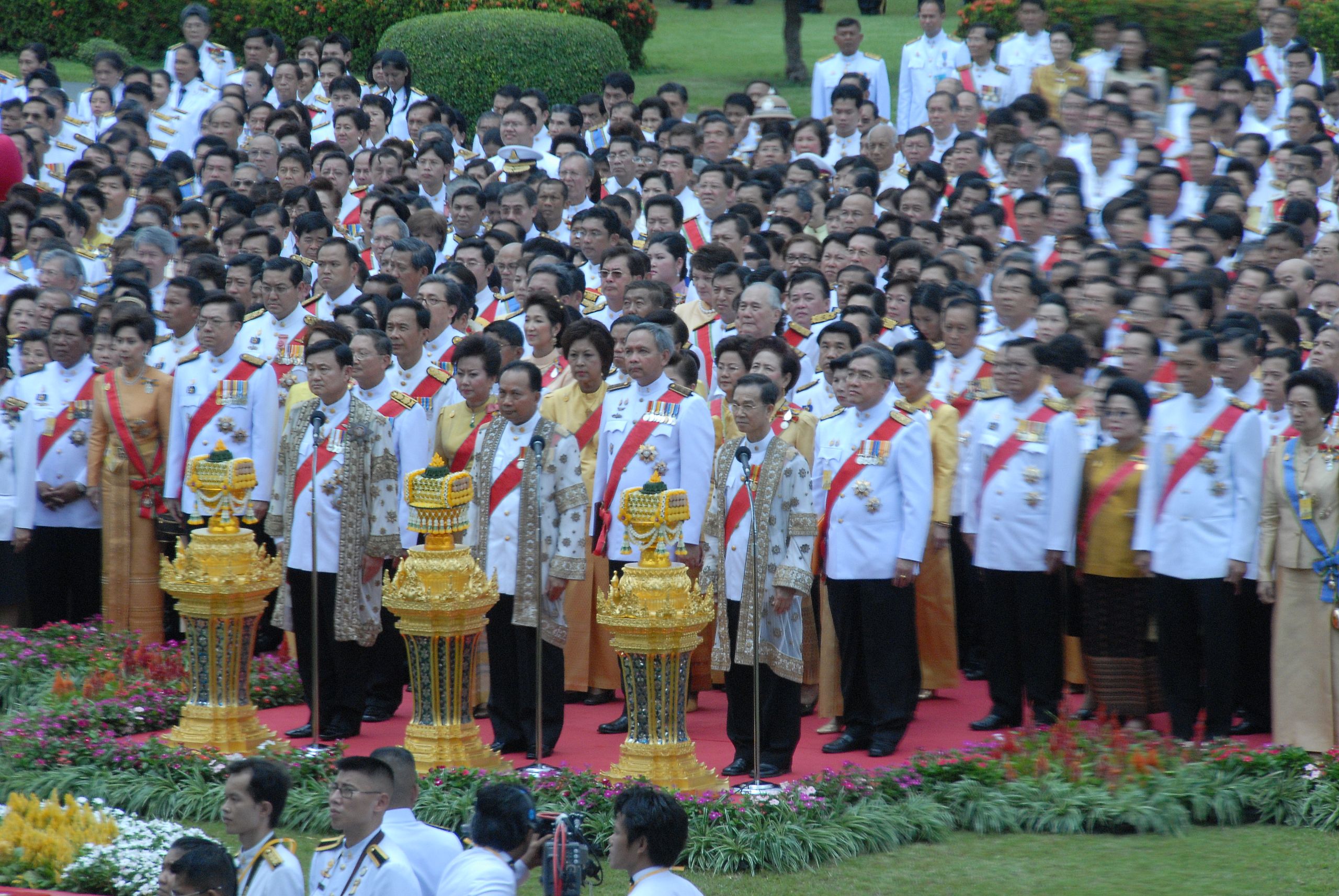 | คำอธิบาย : พระราชพิธีบวงสรวง สมเด็จพระบูรพมหากษัตริยาธิราช ณ พลับพลาพิธี พระที่นั่งอนันตสมาคม วันที่ 9 มิถุนายน 2549 |