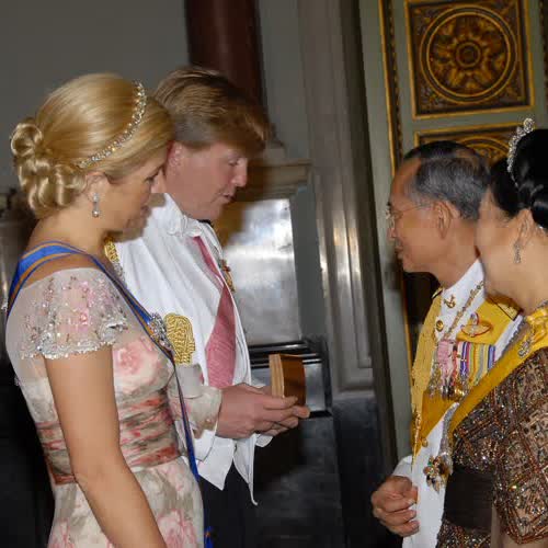 | คำอธิบาย : ถวายพระกระยาหารค่ำแด่พระประมุข และพระราชวงศ์ต่างประเทศ ณ พระที่นั่งบรมราชสถิตยมโหฬาร เมื่อวันที่ 13 มิถุนายน 2549 |