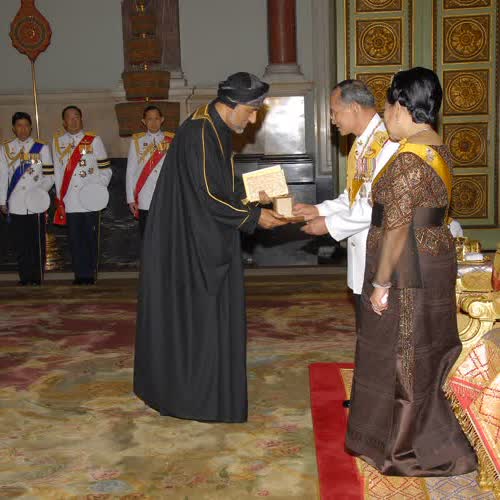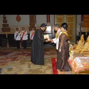 | คำอธิบาย : ถวายพระกระยาหารค่ำแด่พระประมุข และพระราชวงศ์ต่างประเทศ ณ พระที่นั่งบรมราชสถิตยมโหฬาร เมื่อวันที่ 13 มิถุนายน 2549 |