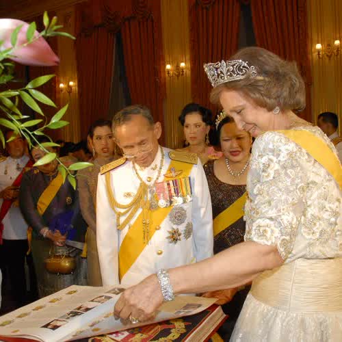 | คำสำคัญ : ถวายพระกระยาหารค่ำ, ถวายพระกระยาหารค่ำแด่พระประมุข และพระราชวงศ์ต่างประเทศ ณ พระที่นั่งบรมราชสถิตยมโหฬาร, พระราชพิธี, ราชวงศ์จักรี, พระบาทสมเด็จพระปรมินทรมหาภูมิพลอดุลยเดช มหิตลาธิเบศรรามาธิบดี จักรีนฤบดินทร สยามินทราธิราช บรมนาถบพิตร, พระบาทสมเด็จพระเจ้าอยู่หัว, พระราชพิธีเฉลิมฉลองสิริราชสมบัติครบ 60 ปี, พระราชพิธีฉลองสิริราชสมบัติ, พระมหากษัตริย์แห่งราชอาณาจักรไทย, รัชกาลที่ 9 |