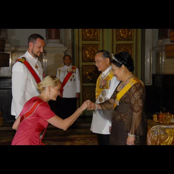 | คำอธิบาย : ถวายพระกระยาหารค่ำแด่พระประมุข และพระราชวงศ์ต่างประเทศ ณ พระที่นั่งบรมราชสถิตยมโหฬาร เมื่อวันที่ 13 มิถุนายน 2549 |