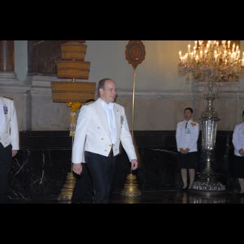 | คำอธิบาย : ถวายพระกระยาหารค่ำแด่พระประมุข และพระราชวงศ์ต่างประเทศ ณ พระที่นั่งบรมราชสถิตยมโหฬาร เมื่อวันที่ 13 มิถุนายน 2549 |