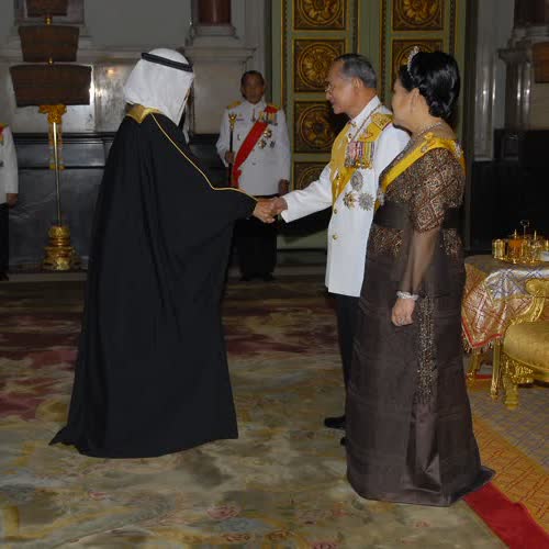 | คำอธิบาย : ถวายพระกระยาหารค่ำแด่พระประมุข และพระราชวงศ์ต่างประเทศ ณ พระที่นั่งบรมราชสถิตยมโหฬาร เมื่อวันที่ 13 มิถุนายน 2549 |