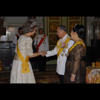 | คำอธิบาย : ถวายพระกระยาหารค่ำแด่พระประมุข และพระราชวงศ์ต่างประเทศ ณ พระที่นั่งบรมราชสถิตยมโหฬาร เมื่อวันที่ 13 มิถุนายน 2549 |
